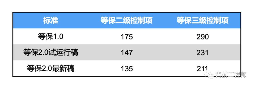 如图为等保标准更新,总体变化不大,等保2.0精简了控制项。