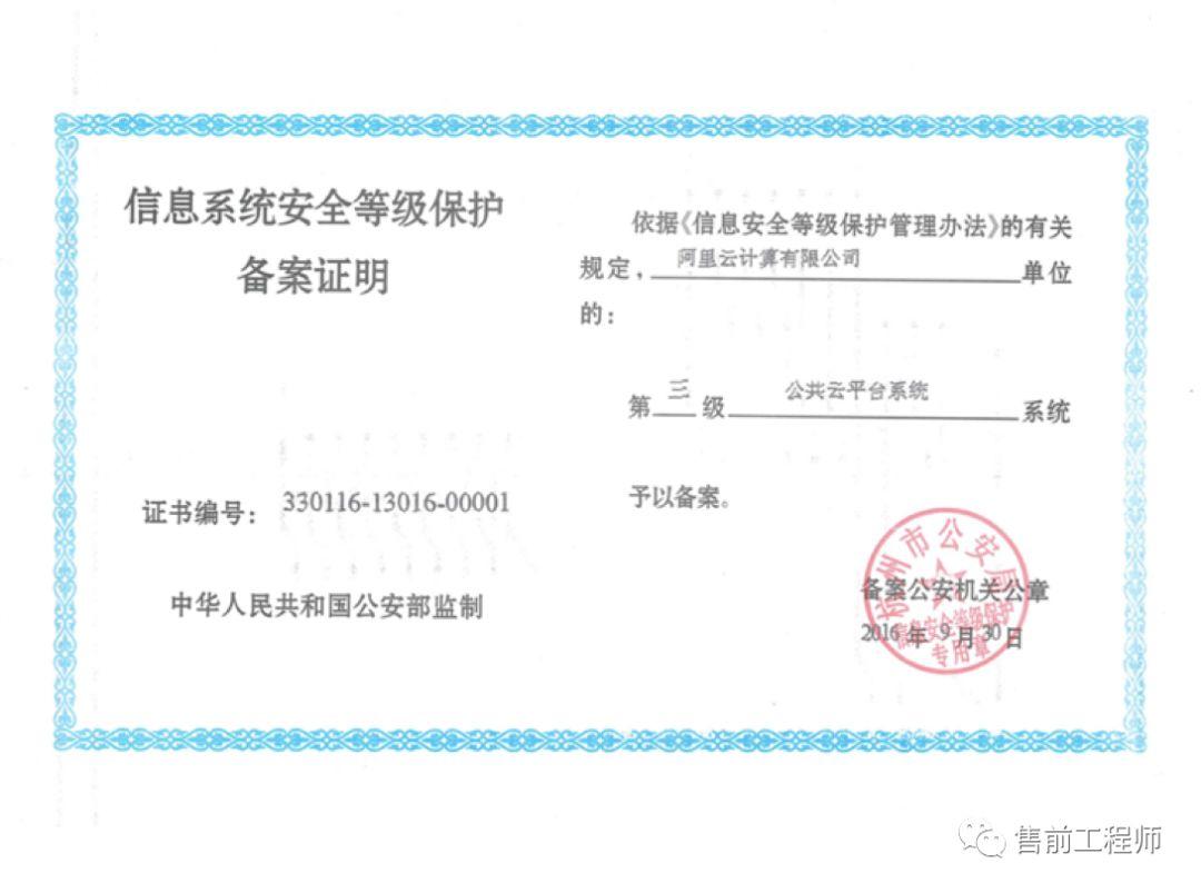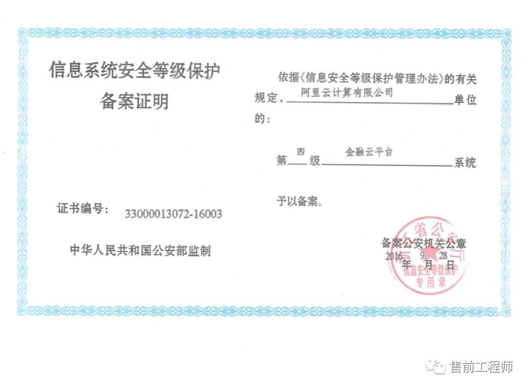 阿里云公共云平台定级为三级,金融云定级四级