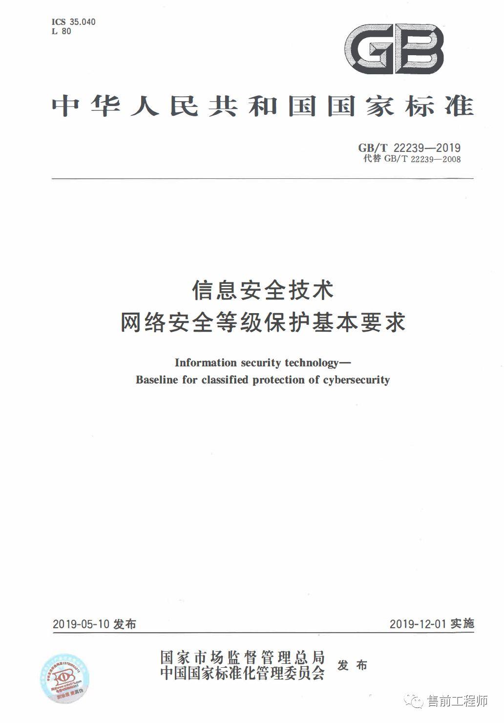 2019年5月10日正式颁布等保2.0标准,并计划2019年12月1日正式实施。